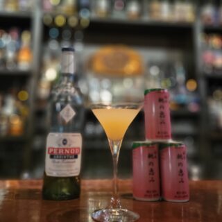 ゴッホが愛した幻覚のお酒「アブサン」と福島の桃を合わせた、フランスと福島をつなぐカクテルです。