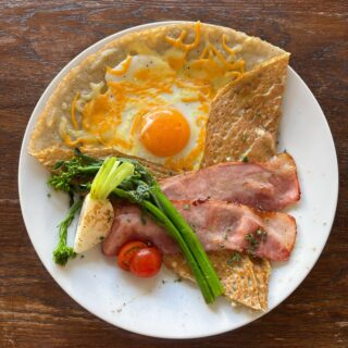 ゴッホの『ひまわり』を一皿で表現したガレット。ひまわりを思わせる卵黄がとろりと広がり、季節野菜やベーコンとの相性も抜群!味も見た目にも楽しめる、アートのようなガレットです!