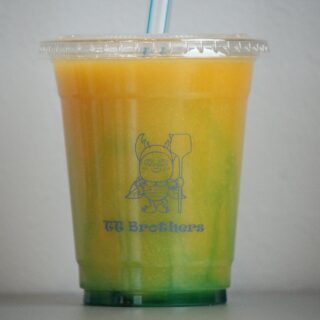 米Pizza TT Brothers 『夜のカフェテラス』の色合いを再現した、果肉たっぷりのマンゴースムージー